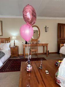 - Wat hebben de gastvrouwen van 2 verschillende accommodaties hun best gedaan om de verjaardagsfeestjes bijzonder te maken. Onze eerste kennismaking met Zuid-Afrika was daarom heel bijzonder. Het personeel van Safari Club SA Johannesburg zong voor onze jongste dochter. Ze kreeg taart en de ballonnen hingen boven de tafel. Ze kreeg cadeautjes. Dit had ik vooraf geregeld, maar fijn dat ze het ook zo goed opgepakt hebben. En ook in Pretoria stond taart klaar en een cadeau.