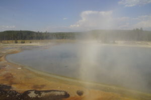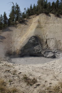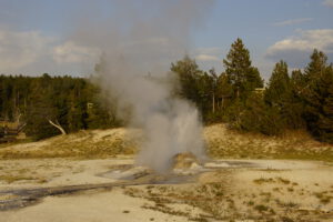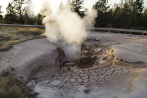 Rond 11.00 uur starten we met de onze ronde door het park. De Upper Loop. De eerste stop ‘Mud Volcano’. Bah… wat een lucht. Zo gek, al die borrelende, omhoog spuitende modder. Hier deden we weer een boardwalk van ongeveer 1,6 km. Toch best zwaar vanwege het hoogte verschil en de warmte. Maar zo anders dan wat dat wat we gisteren zagen.