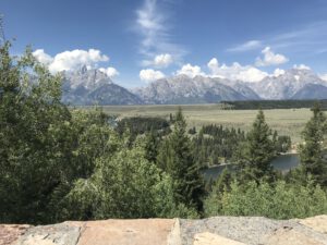 De vele wegwerkzaamheden in en rond Yellowstone en Grand Teton zorgden voor vertragingen. We reden vandaag dus Yellowstone uit, door Grand Teton en stopten maar 2 keer. 1x om een ijsje te eten. Die lagen nog in het vriesvakje. Dit deden we bij Snake River Overlook. Het uitzicht viel wat tegen. Of waren we al te veel verwend?