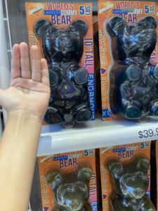 Daarna aten de meiden een enorm stuk pizza en L, Alex en ik kozen voor Aziatisch. Gebakken rijst met vlees. Lekker! We bestellen twee ranja. Maar 2, want aan die bekers hadden we echt genoeg met z’n vijven. Vanuit het Flamingo hotel besloten we in de richting van de zipline te lopen. Dit leek ons heel leuk, maar de kinderen verklaarden ons voor gek. We besloten om ’s avonds in het reuzenrad te gaan. In het donker bleek de prijs hoger, maar het leek ons ook wel spectaculairder. Daarna liepen we een snoepwinkel binnen. Buiten rook het al zoet. De meiden waren het er niet mee eens dat we naar buiten liepen zonder iets te kopen. Het was allemaal zo duur.