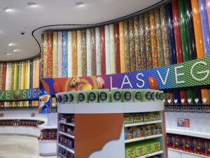 Alex en ik gingen even gokken toen de kinderen bijkwamen op de kamer. Met de TV aan natuurlijk. We pinden 100 dollar en kwamen ook weer met 100 dollar terug. Het ging wel oké, beetje winst, beetje verlies en uiteindelijk dus weer met hetzelfde bedrag terug naar de kamer. Na het rusten liepen we weer de strip op. We kochten een zelf gevulde beker met M&M’s in de M&M store. Dat hoort er toch wel een beetje bij. Een serieuze aangelegenheid volgens de kinderen.