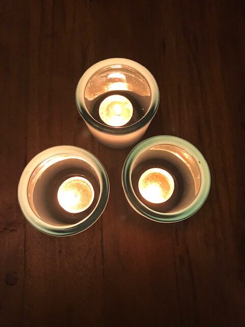 - Waxinelichtjes en een klein kerstboompje zorgden voor de kerstsfeer.