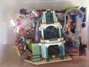 Ook de Legobak van de meiden wordt steeds voller. Ondanks dat ze het heel mooi vinden, spelen ze er maar weinig mee. Maar zodra hun broer aan het bouwen gaat doen ze wel graag mee. Het is hier echt een activiteit om samen te doen.