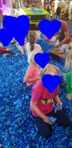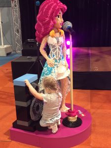 Maar de kinderen raakten niet uitgespeeld. Ze konden overal bouwen. Hele bakken vol met legoblokjes van dezelfde kleur(en). Hier zijn ze wel even aan begonnen, maar dat konden ze thuis ook wel doen zeiden ze. Genoeg Lego thuis. Daarom is er volop gebruik gemaakt van de andere activiteiten. Springkussens, foto’s maken met bouwwerken en ‘echte’ poppetjes, dansen met de Legofriends. De jongsten vermaakten zich ook prima in Duploworld. Daar stonden bijvoorbeeld lege Duplobedden die uitgetest moesten worden. Het stukje van “legofans” vonden ze bij ons minder interessant. ‘Alleen maar kijken is minder leuk’, aldus onze kinderen.