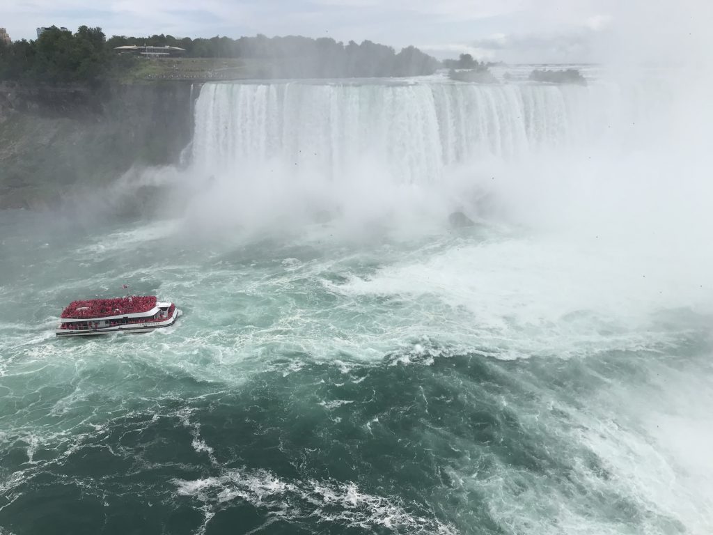 Voor wie geïnteresseerd is in de Hornblower Niagara Cruise: voor volwassenen kostte het 29,32 CAD inclusief tax en voor de kinderen (vanaf vijf jaar) 18,02 CAD inclusief taks. Voor de jongste van drie jaar hoefden we nog niets te betalen. In het hoogseizoen gaat de boot elk kwartier tussen 10 uur s ochtends en vier uur ’s middags. (let op dat de boarding voor de laatste cruise 15 min. eerder sluit)