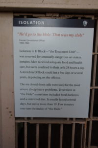 We konden nog een uur in de zon zitten. Voor het eerst deze vakantie. Maar ook hier liep alles soepel en zo vertrokken we al om 09.30 uur met de boot naar Alcatraz. In plaats van de gereserveerde tijd van 10.00 uur. De boottocht was eigenlijk wel mooi. Na een praatje van een ranger op Alcatraz Island mochten we rondlopen. Eigenlijk een heel mooi eiland met vele vogels en bloemen en planten. Maar vooral een indrukwekkend verhaal. N was al snel uitgekeken, F wilde vooral alles zien in het gevangenisgebouw en L vond de ontsnappingsverhalen het meest interessant. The Hole maakte op mij veel indruk. Zo’n donkere cel waar gevangenen soms dagen/ weken/ maanden geïsoleerd op gesloten zaten. Als je al niet gek was dan zou je het daar wel worden. Verder vond ik dit bezoek zeker wel de moeite waard. Ik vind dat je hier wel geweest moet zijn als je in San Francisco bent geweest. Ik kocht nog een autobiografie van een gevangene. Hoop dat het wat is. Het eiland behoort tot de nationale parken en is goed onderhouden. Misschien komt dat ook omdat er flinke straffen staan op vernieling of graffiti. 2 jaar cel en 20.000 dollar. Je mag alleen op het pleintje eten en drinken (m.u.v. water).