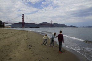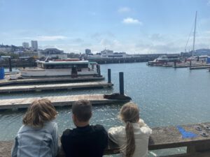 De reis ging goed. De kinderen hebben helemaal niet gemopperd. We landden 40 minuten later dan gepland in New York, maar verder verliep alles zoals het moest. Al vroeg de vrouw bij de grenscontrole nog wel even aan L. of Alex wel mee mocht. Hij zei gelukkig ‘Ja’. Na bijna drie uren wachten vertrokken we richting San Francisco. F. sliep bijna de hele vlucht. En ook N, L, Alex en ik deden een dutje. De service was een stuk minder uitgebreid dan de eerste vlucht, omdat dit een binnenlandse vlucht was. Daarom geen eten, kussen of dekentje. Maar alleen drinken en wat snacks.