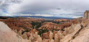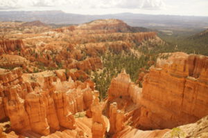 We stapten uit bij Bryce Point. Wauw! Mooier dan verwacht. We liepen naar het uitzichtpunt en maakten veel foto’s. Hup, weer naar de bus. De kinderen waren daar vooral onder de indruk van de enorme zwarte mieren die er liepen.