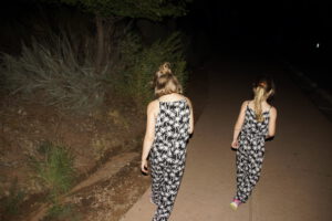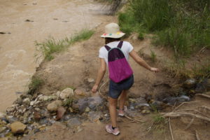Terug bij de camper gingen Alex en L voetballen, de meiden knutselen met plastic flesjes, plastic zakjes en veel plakband. Zo worden de zakjes van de Walmart ook hergebruikt. Een mooi moment voor mij om een dagverslagje te schrijven. We mochten helaas geen kampvuur maken, dus marshmallows roosteren zat er niet in. We aten een vette diepvriespizza. Toen het donker werd gingen we op Tarantula jacht. We zagen veel herten en eekhoorntjes. En heel veel dikke zwarte torren die hun kop letterlijk in het zand staken als we langskwamen lopen. Maar die grote spinnen lieten zich niet zien.