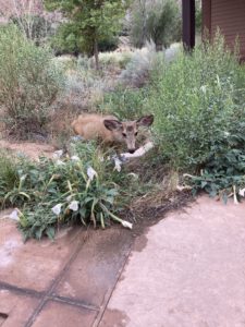 We hadden een lange reisdag voor de boeg. Minimaal 5,5 uur. We dumpten het vuile water, vulden het schone water bij. Hier kon het nog. Straks was het minder handig op de campings in de parken. Weer reden we naar de Walmart voor boodschappen voor de dagen die nog zouden komen. Uiteindelijk waren we rond 10.30 uur op weg. We reden van de ene berg naar de andere. Prachtige stukken, maar ook heel lang. We zagen weinig dieren, maar de vrouwtjeseland was wel mooi om te zien. Groot ook.