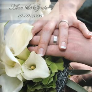 Onze trouwfoto’s zijn gemaakt door Anouk van fotostudio Fabro. De trouwfoto’s die in dit bericht staan zijn foto’s van foto’s en daarom kwalitatief wat minder dan het origineel.