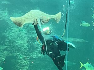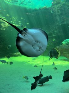 Het aquarium was niet zo duur gelukkig. Voor volwassenen € 12,50 en voor de kinderen minder. Het 2 Ocean Aquarium was zeker de moeite waard. Het voeren van de pinguïns viel tegen. Druk, daardoor slecht zicht en wij hadden natuurlijk al pinguïns in de vrije natuur gezien. Het voeren van de pijlstaartroggen (en schildpadden en diverse vissen) was zeker de moeite waard. En we hebben haaien gezien! Niet in de vrije natuur, maar toch.