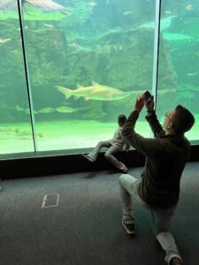 Na het aquarium (waar de oudste nog een hoodie kocht) liepen we terug naar de parkeerplaats. Via het winkelcentrum. We kwamen nog het toeristentreintje (voor kleine kinderen tegen en de kinderen renden nog even door de speeltuin. We kochten een burger bij de Mac Donalds. Drinken hadden we nog meer dan genoeg in de auto liggen. En toen was het tijd om te vertrekken.