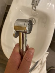 De wekker ging al om 07.45 uur, want de kinderen wilden nog zwemmen. Om 08.00 uur was het zwembad open. Dat kon ook makkelijk, want het was al 36 graden. Ivonne friste zichzelf nog even op met de sproeier van het bidet. Oeps.. als je voordoet hoe je evt je voeten er in kunt wassen, is het wel handig om de sproeikop niet op je gezicht te richten.