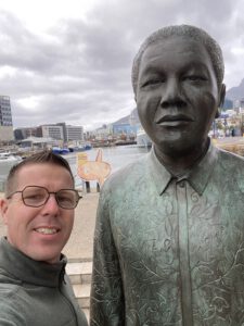 Na het opstaan pakten we meteen de spullen verder in. Om 09.30 uur gingen we ontbijten. De koffers mochten we in het hotel laten staan, dus na het ontbijt checkten we meteen uit. We gingen met de auto weer naar V&A Waterfront. Op naar het aquarium. Het was weer heerlijk weer. In een T-shirt liepen we rond. Ondertussen zagen we nog allerlei dingen om foto’s van te maken. De letters van Cape Town, 4 standbeelden (o.a. Nelson Mandela) en de uitspraken die zij hebben gedaan op het gebied van gelijkheid.
